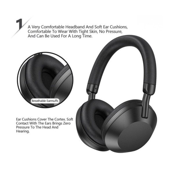 Auriculares Bluetooth con speakers de 50 mm que brindan un sonido potente y envolvente. Ofrecen conexión inalámbrica, radio FM, entrada AUX y ranura TF para reproducir música sin depender del teléfono. Cuentan con batería recargable de 150 mAh, puerto Tipo C y una autonomía de hasta 3 horas.